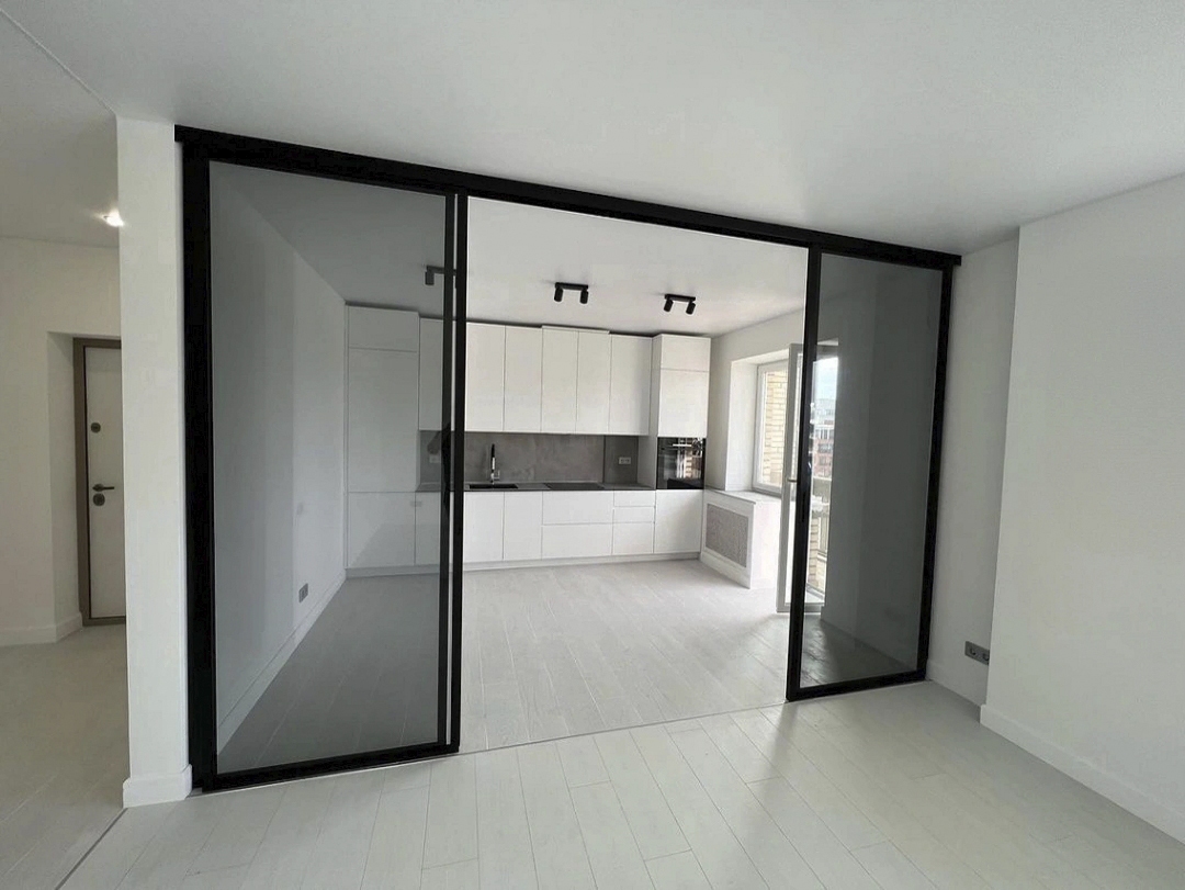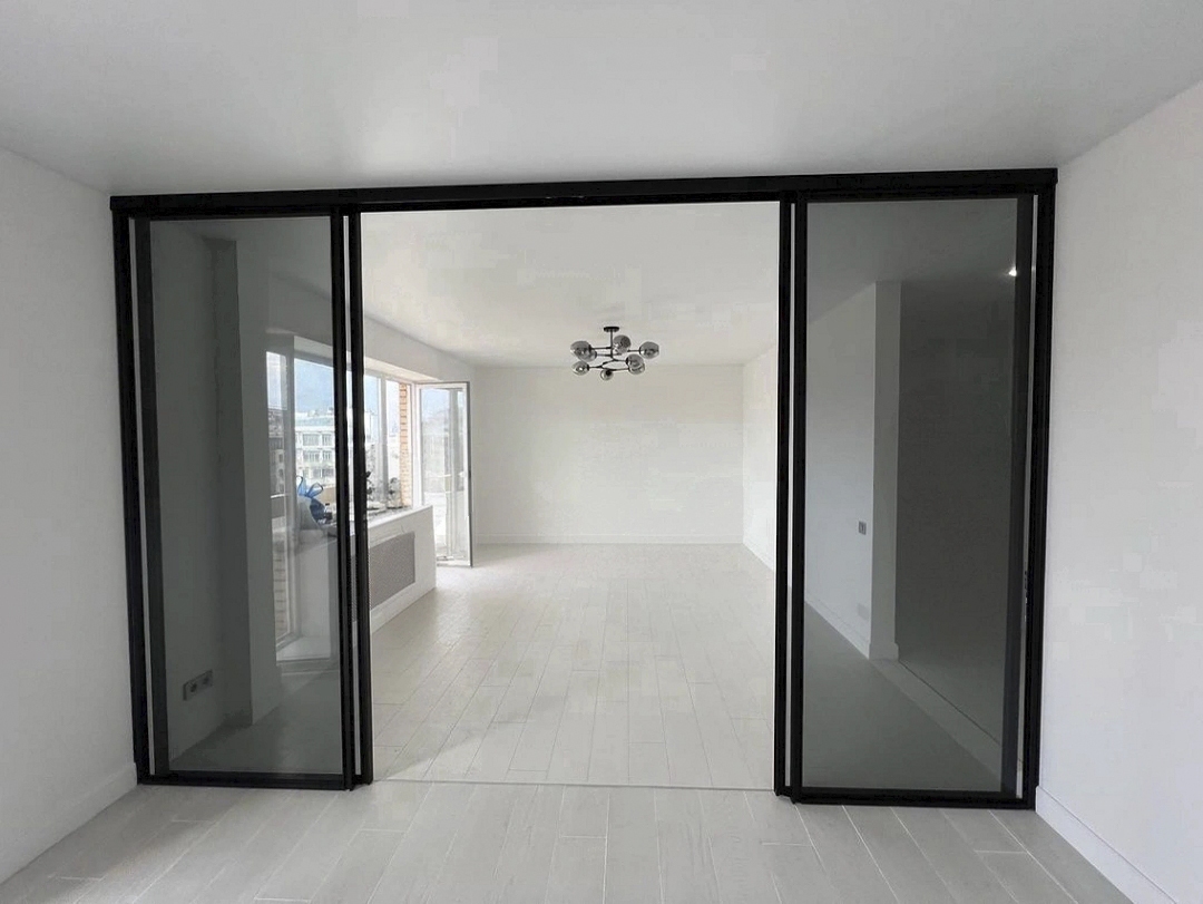 Межкомнатная подвесная перегородка Boca, с прозрачным стеклом, с доводчиком на кухню, Арт.0515