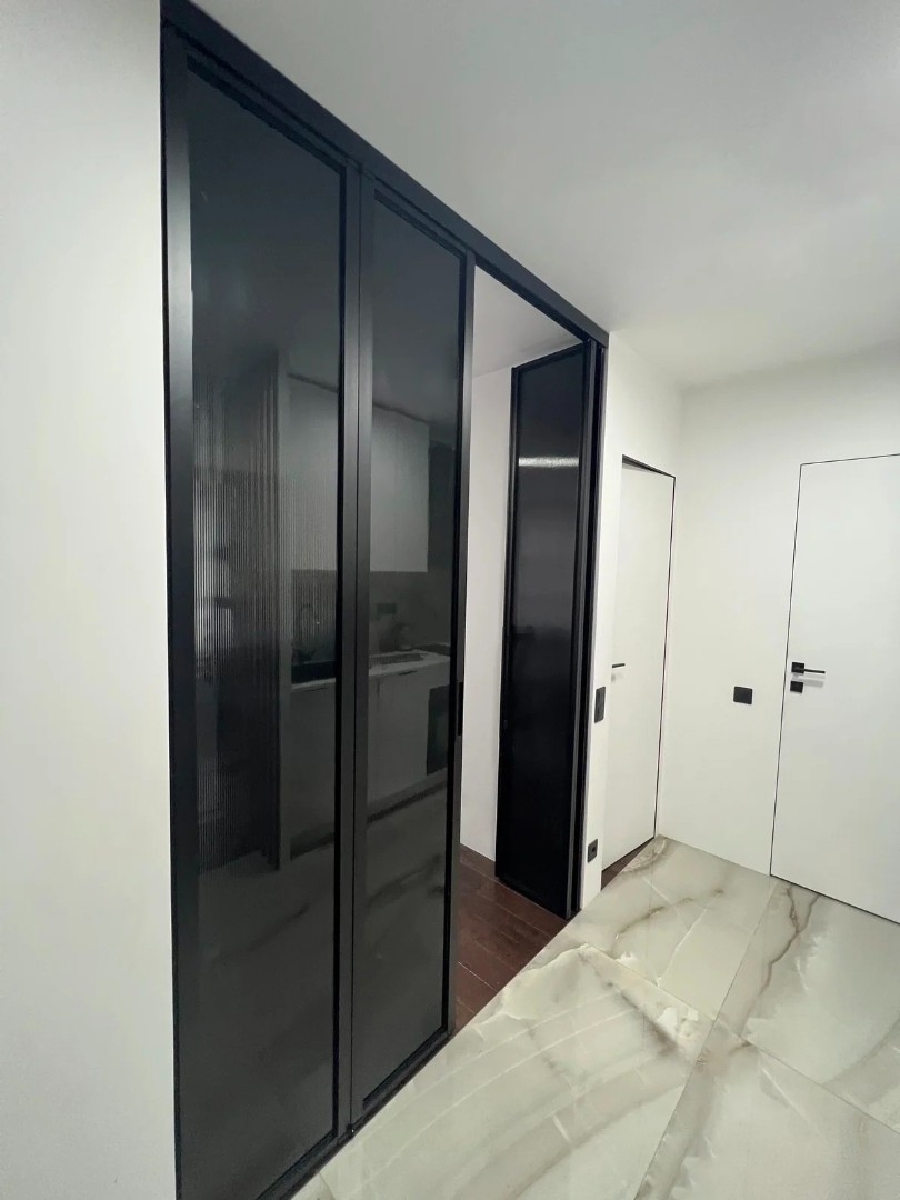 Таким образом, двери в алюминиевой раме — это не просто функциональный элемент, а законченное дизайнерское решение, объединяющее в себе надежность, эстетику и индивидуальность. Они подходят для спальни, гардеробной, кабинета, гостиной и даже для организации семейного шкафа, где у каждого члена семьи будет своя удобная секция.