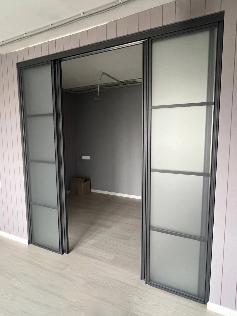 Межкомнатная перегородка Elegrum, с матовым стеклом, с доводчиком в гостиную, Арт.0039