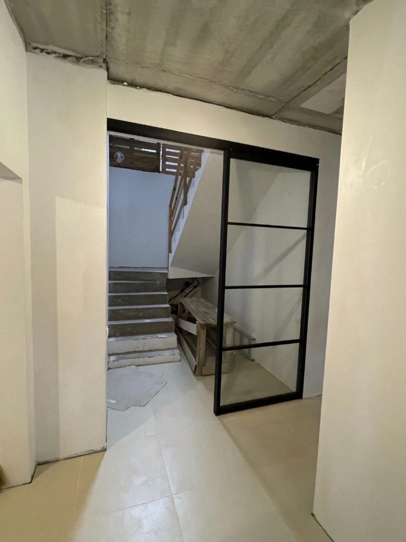 Межкомнатная подвесная перегородка Меранти, с прозрачным стеклом, с доводчиком в проем, Арт.0191