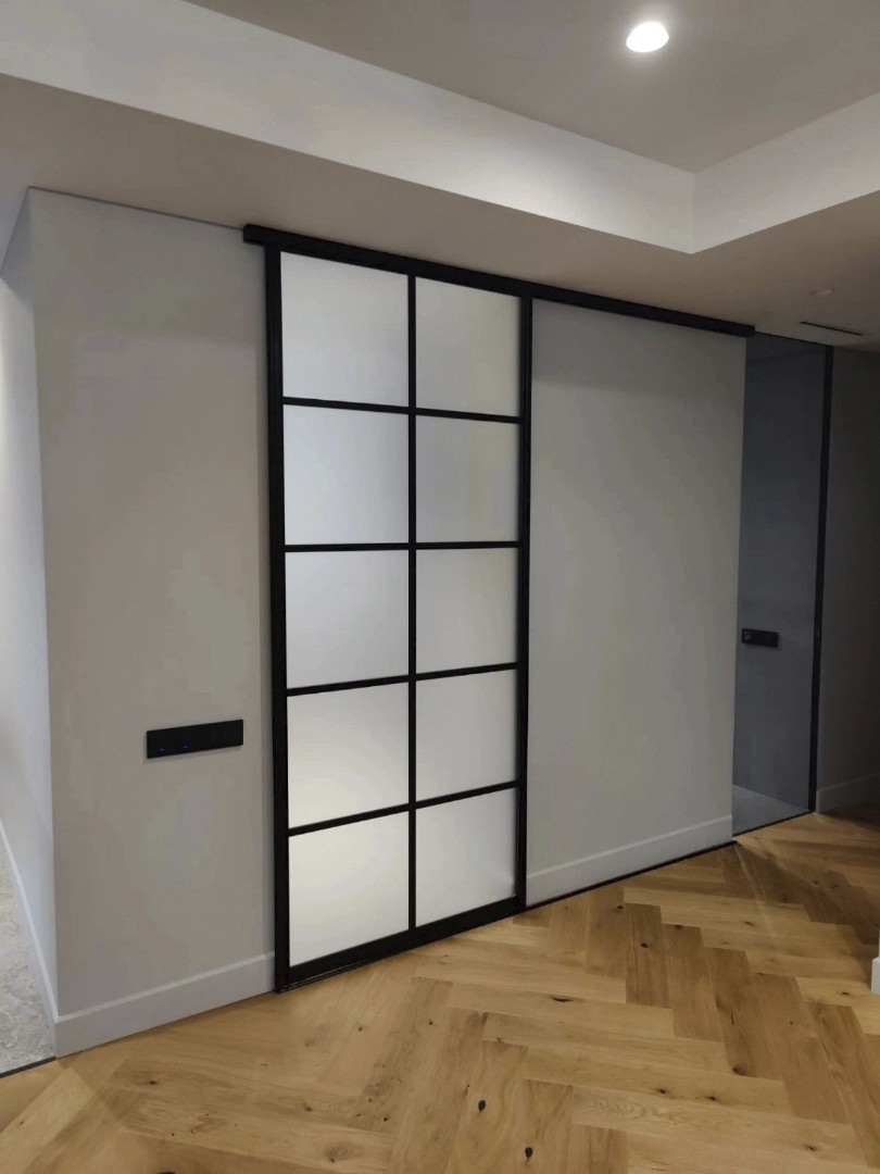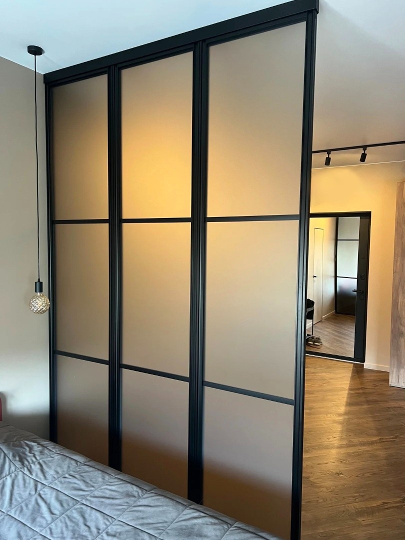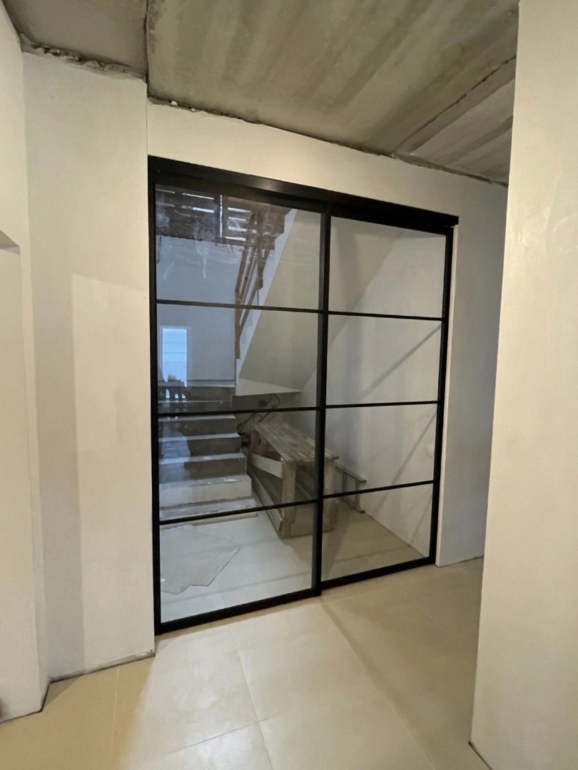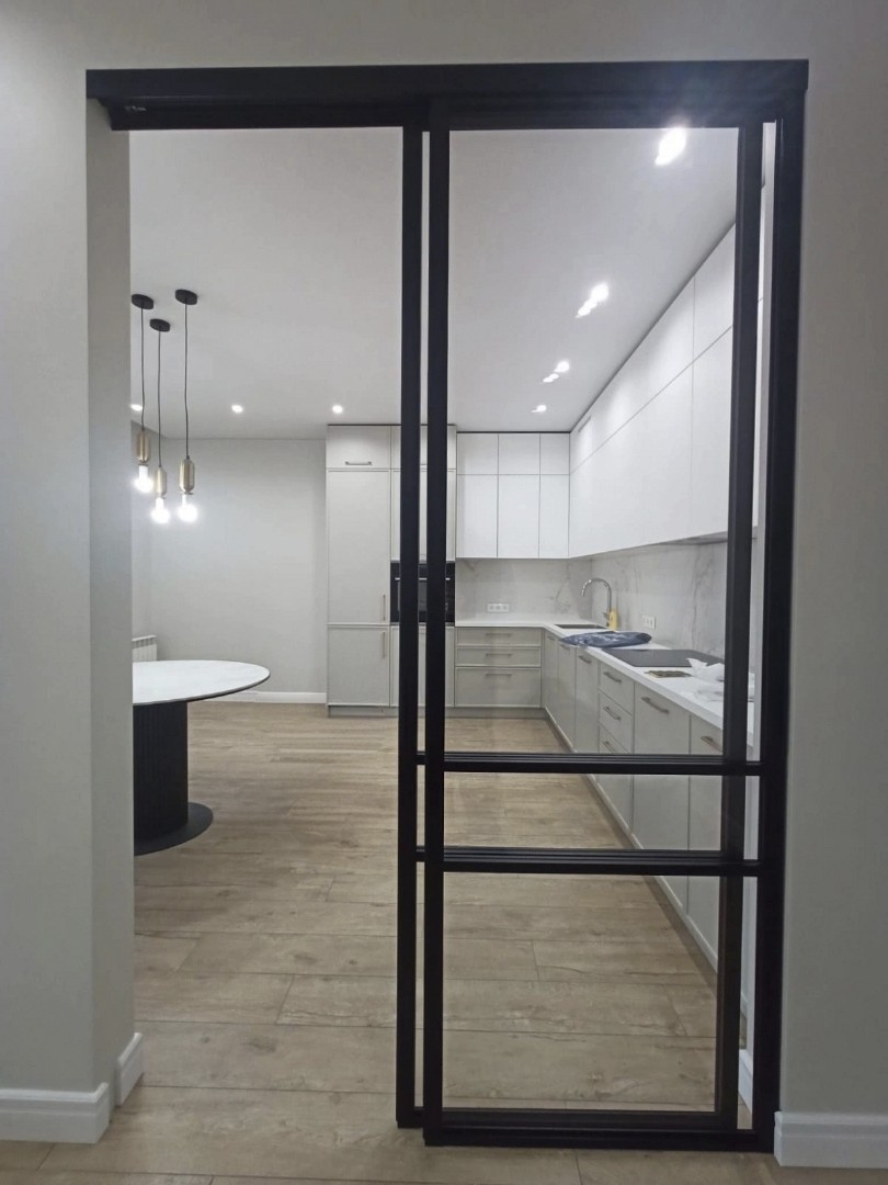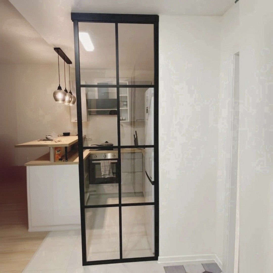 Это не просто функциональная конструкция, а смелый дизайнерский элемент. В ее основе — мощный алюминиевый профиль, часто с имитацией матового черного или анодированного металла, и специфические виды стекла: матовое, рифленое, селфикс, иногда с эффектом патины или легкой дымки. Главная задача — создать ощущение открытого, «недостроенного» пространства, сохранив при этом четкое функциональное зонирование.