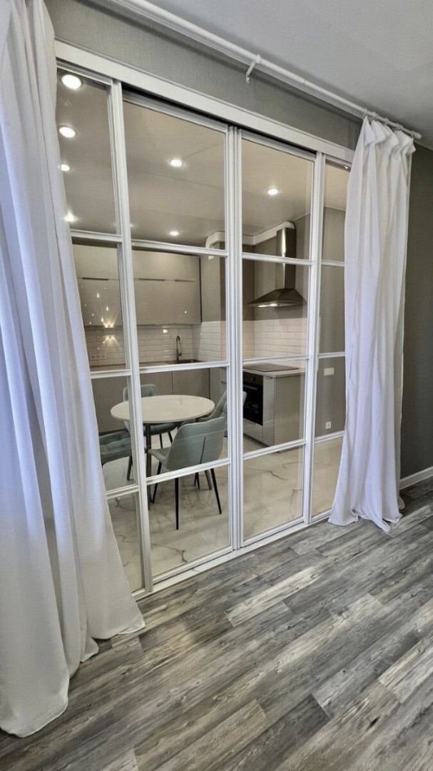 Перегородка Титул, с прозрачным стеклом, с доводчиком на кухню, Арт.0319