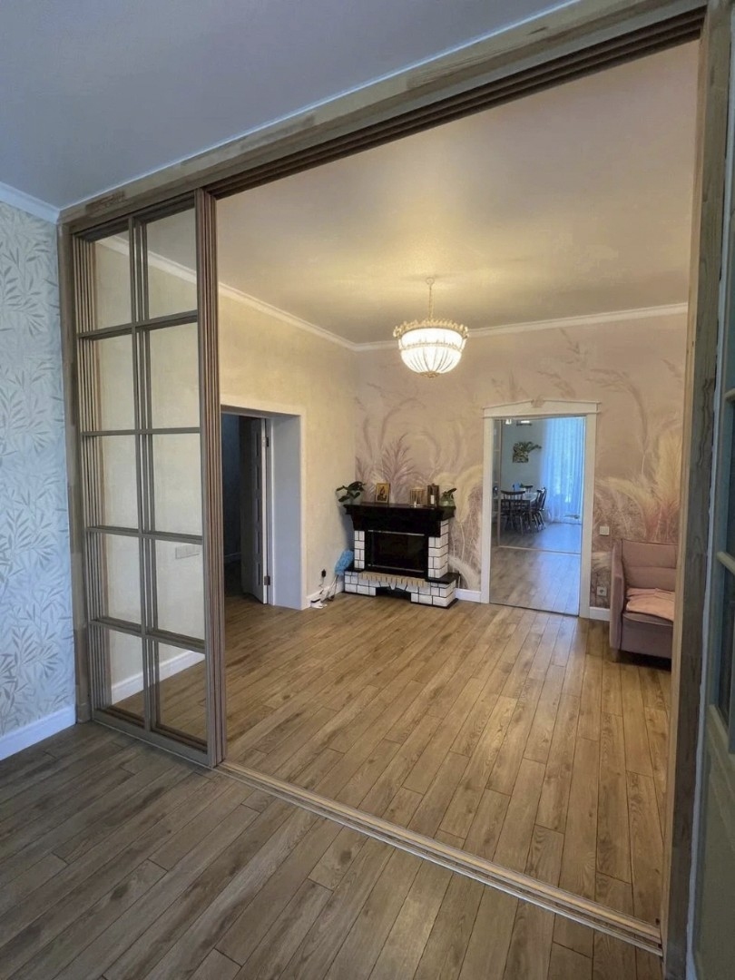Раздвижные системы с нижней рельсой — классика для зонирования. Идеальны, когда нужно быстро и полностью открыть или закрыть проем. На фото вы увидите, как такие перегородки из матового или прозрачного стекла визуально сохраняют объем комнаты, мягко отделяя рабочую зону.