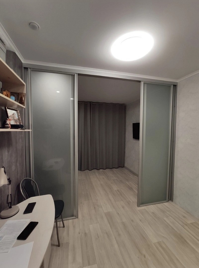 - Раздвижные перегородки с нижней рельсой: Идеальны для разделения комнаты двух детей. Позволяют создать два отдельных личных пространства, которые при необходимости легко объединяются.